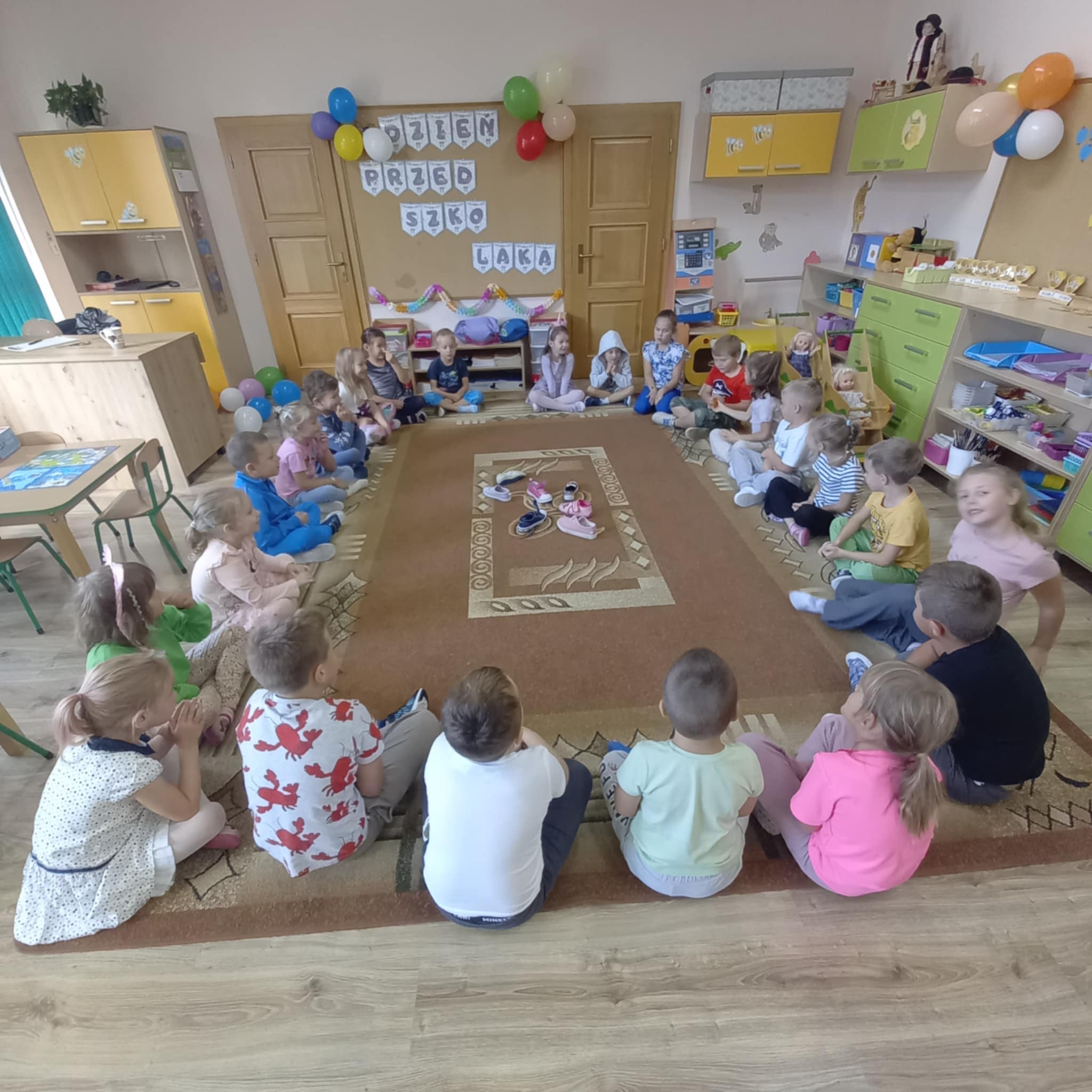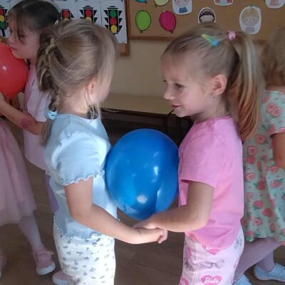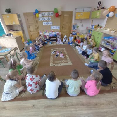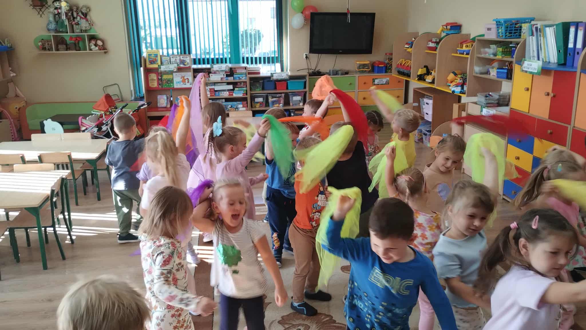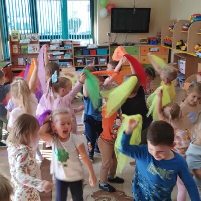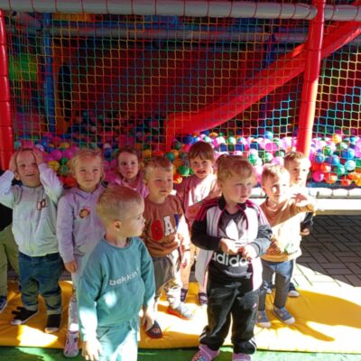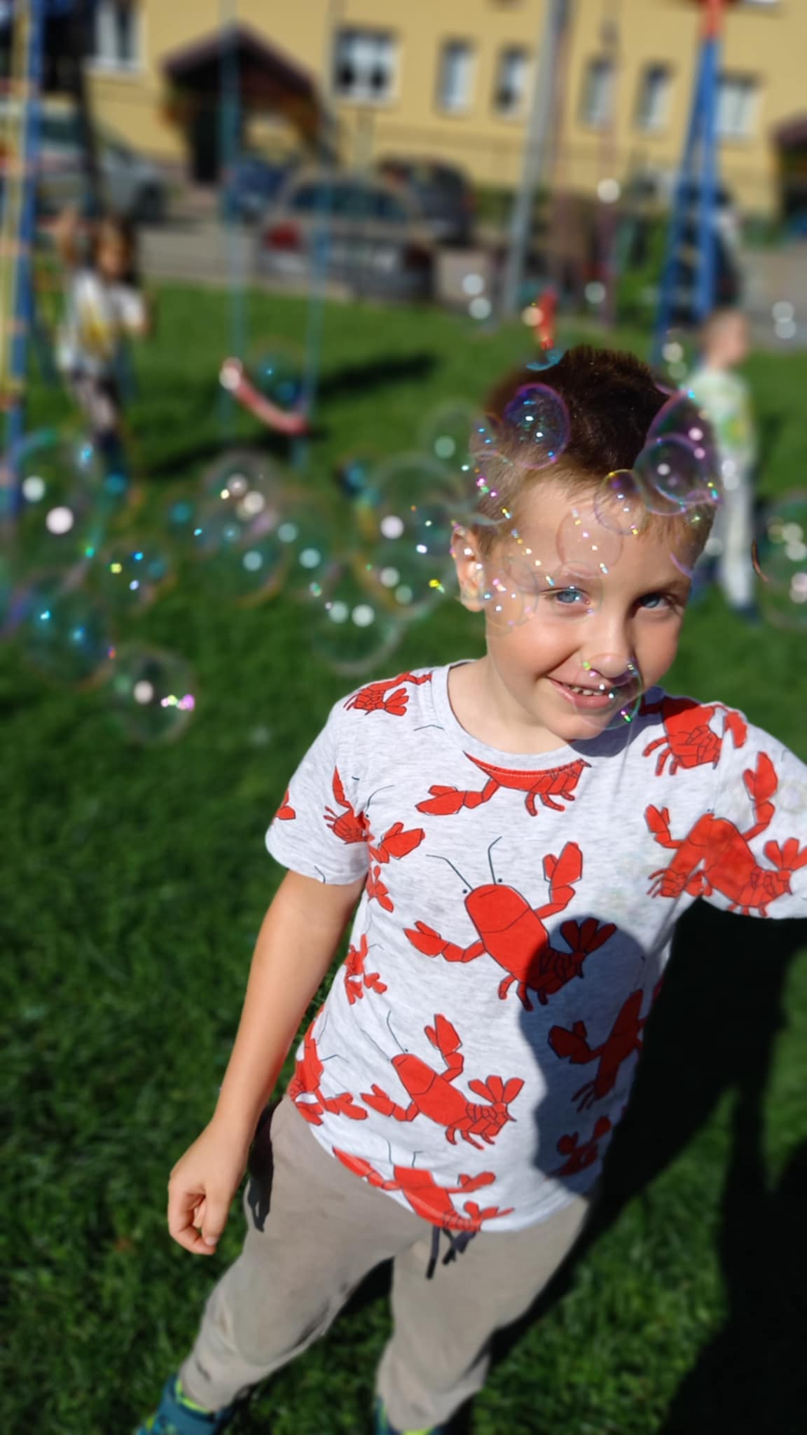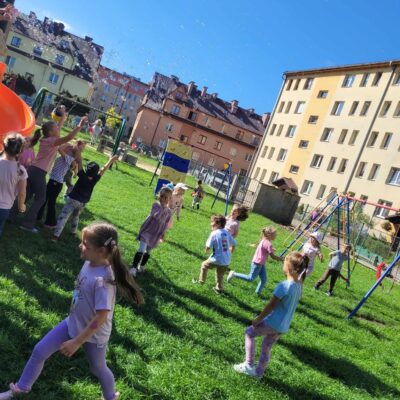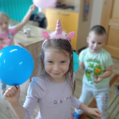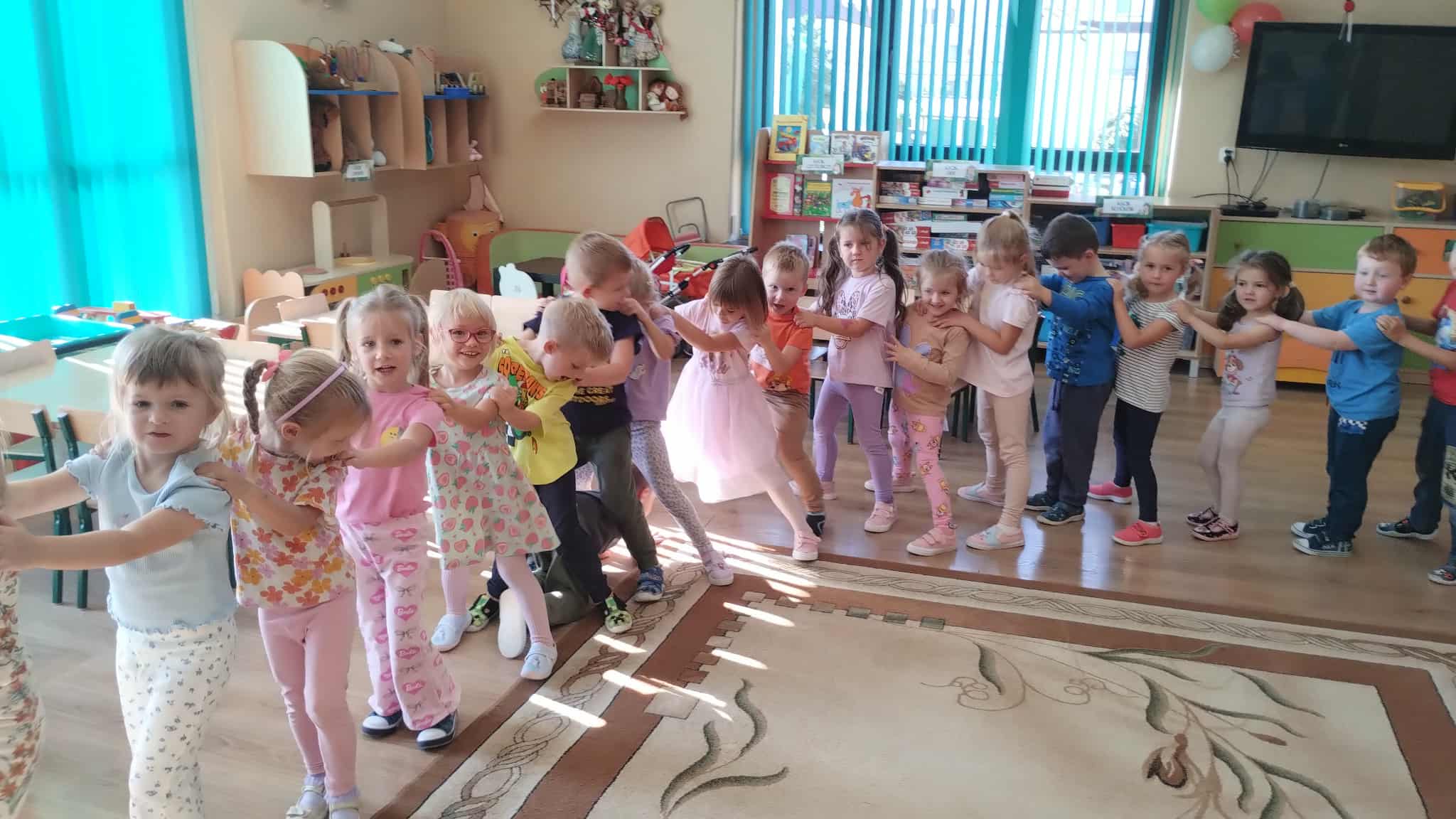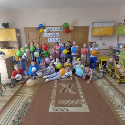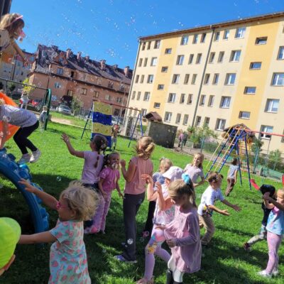 Dziś obchodziliśmy wyjątkowe święto – Dzień Przedszkolaka. Od samego rana w przedszkolu panowała radosna atmosfera, a na dzieci czekało mnóstwo atrakcji. Najpierw odwiedziła nas ogromna, uśmiechnięta maskotka Stich, która witała dzieci, robiła z nimi zdjęcia i zapraszała do wspólnej zabawy. Radości i śmiechu było co niemiara! Kolejną atrakcją był mobilny figloraj – kolorowe zjeżdżalnie, tunele i miękkie elementy do skakania i wspinania się. Dzieci mogły do woli korzystać z przygotowanych niespodzianek, rozwijając sprawność ruchową i integrując się z rówieśnikami. Nie zabrakło także zabaw tanecznych i ruchowych. Wspólnie tańczyliśmy przy wesołej muzyce, a dzieci chętnie uczestniczyły w grach, konkursach i pląsach, które dodawały energii i uśmiechu każdemu uczestnikowi. Dużym hitem były również  bańki mydlane – dzieci z zachwytem łapały migoczące bańki.  To był dzień pełen uśmiechu, dobrej zabawy i wspólnych przeżyć, który na długo zostanie w naszej pamięci.