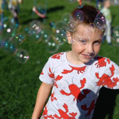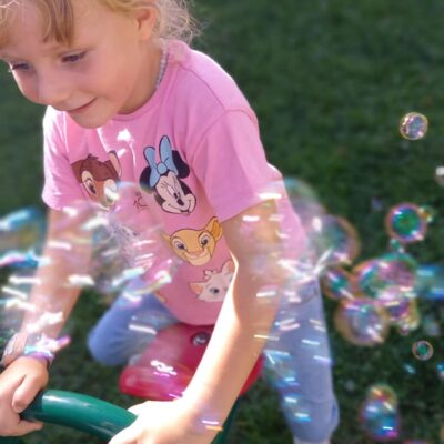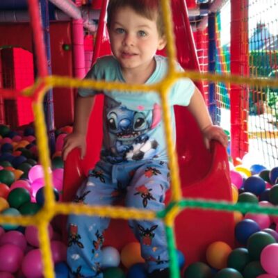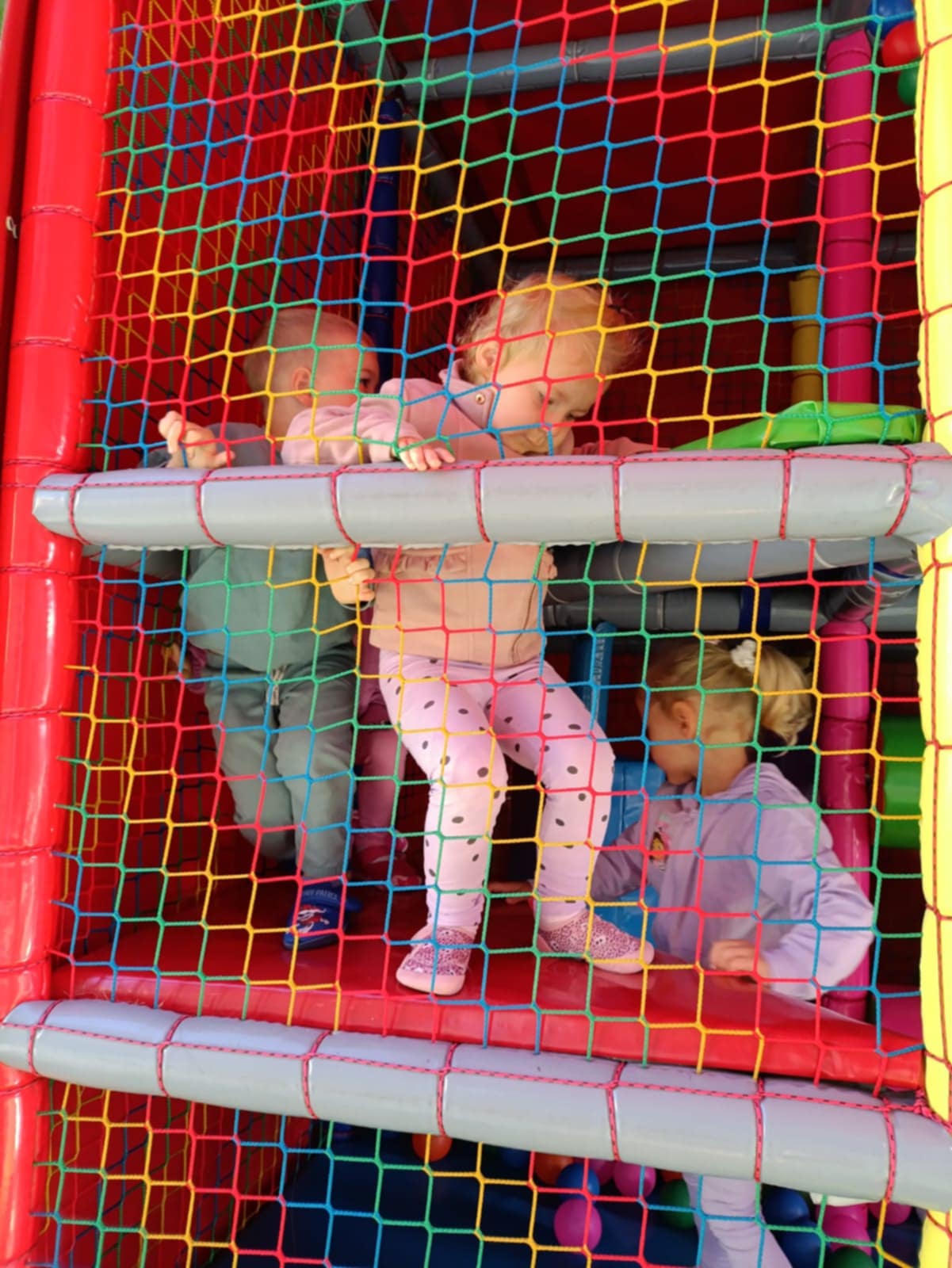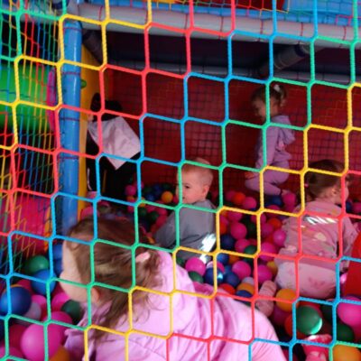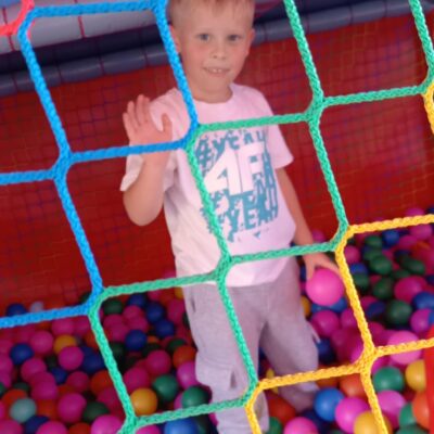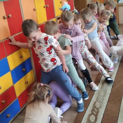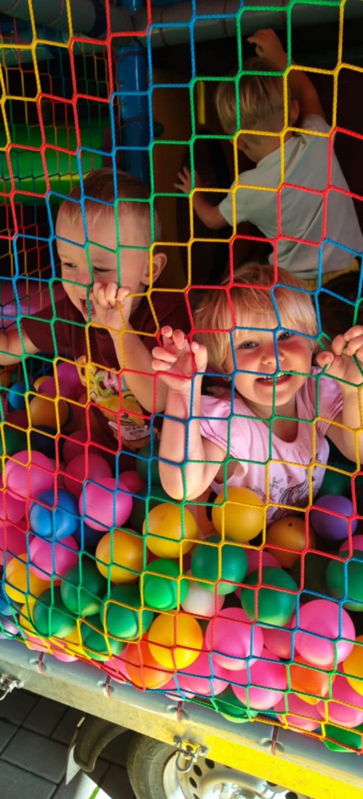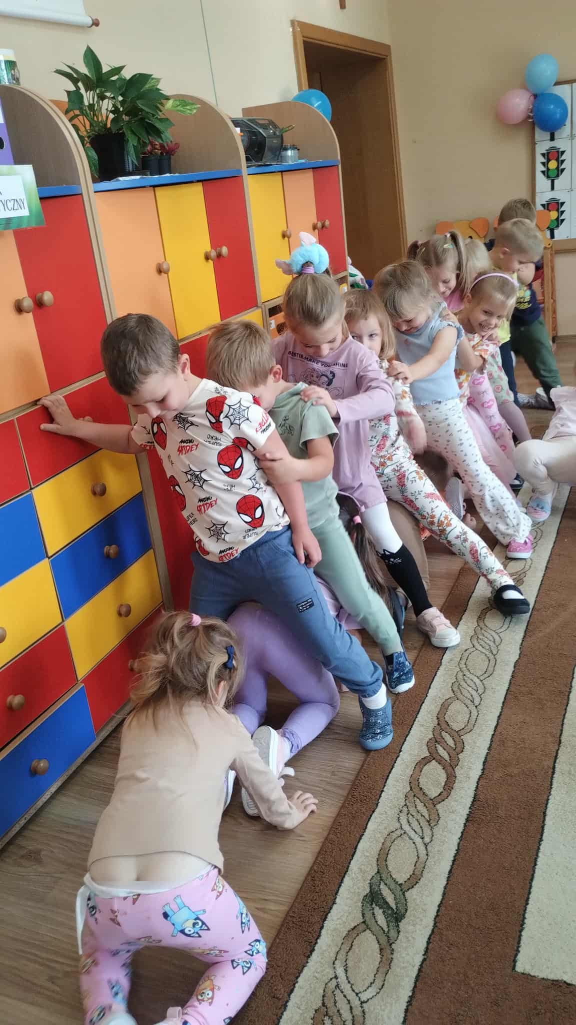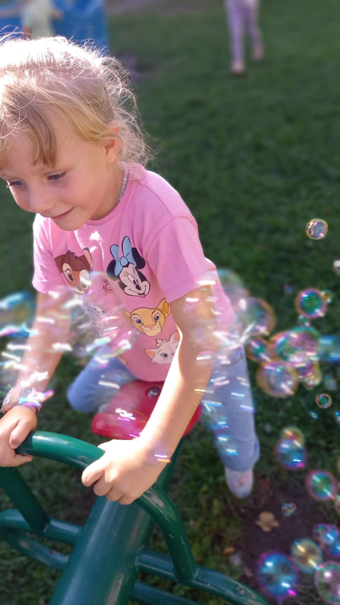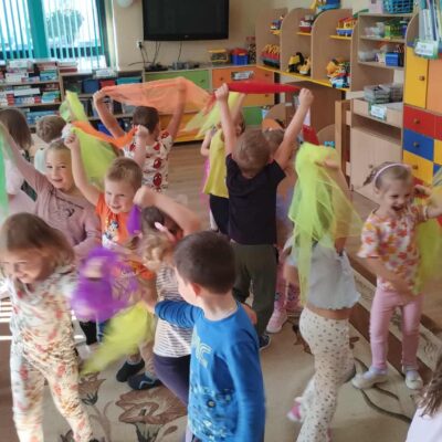 Dziś obchodziliśmy wyjątkowe święto – Dzień Przedszkolaka. Od samego rana w przedszkolu panowała radosna atmosfera, a na dzieci czekało mnóstwo atrakcji. Najpierw odwiedziła nas ogromna, uśmiechnięta maskotka Stich, która witała dzieci, robiła z nimi zdjęcia i zapraszała do wspólnej zabawy. Radości i śmiechu było co niemiara! Kolejną atrakcją był mobilny figloraj – kolorowe zjeżdżalnie, tunele i miękkie elementy do skakania i wspinania się. Dzieci mogły do woli korzystać z przygotowanych niespodzianek, rozwijając sprawność ruchową i integrując się z rówieśnikami. Nie zabrakło także zabaw tanecznych i ruchowych. Wspólnie tańczyliśmy przy wesołej muzyce, a dzieci chętnie uczestniczyły w grach, konkursach i pląsach, które dodawały energii i uśmiechu każdemu uczestnikowi. Dużym hitem były również  bańki mydlane – dzieci z zachwytem łapały migoczące bańki.  To był dzień pełen uśmiechu, dobrej zabawy i wspólnych przeżyć, który na długo zostanie w naszej pamięci.