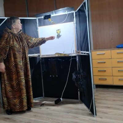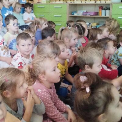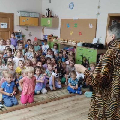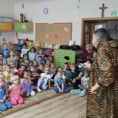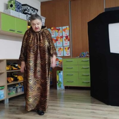 W naszym przedszkolu gościliśmy wyjątkowego gościa – panią Krystynę Popławską z Teatru Jednego Ptaka, która zaprezentowała dzieciom niezwykły spektakl cieni pt. „Tygrys Pietrek”. Dzieci z zapartym tchem oglądały historię małego, lękliwego tygryska Pietrka, pozbawionego pasków przez inne tygrysy, szukającego odwagi, którą odnajduje, ratując chorą mamę. Wyprawa po odwagę kończy się sukcesem, gdy udowadnia, że prawdziwa odwaga to troska o innych. Magia teatru cieni, gra światła i postaci ukrytych za ekranem sprawiła, że najmłodsi przenieśli się w bajkowy świat pełen emocji i przygód. Po przedstawieniu pani Krystyna zaprosiła dzieci „za kulisy” – pokazała, jak wygląda teatr cieni od środka, zdradziła tajemnice powstawania postaci i wyjaśniła, w jaki sposób światło i rekwizyty tworzą niezwykłe efekty. Przedszkolaki mogły na własne oczy zobaczyć, jak rodzi się magia teatru. Było to niezwykle inspirujące spotkanie, które rozbudziło dziecięcą wyobraźnię, zachęciło do twórczej zabawy i pokazało, że teatr to nie tylko scena i aktorzy, ale także wyobraźnia, światło i cień.