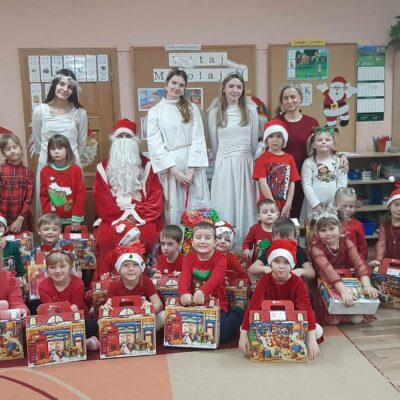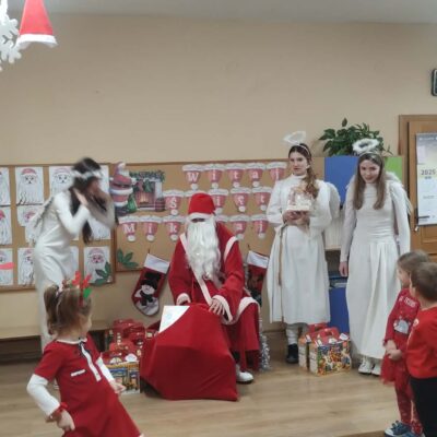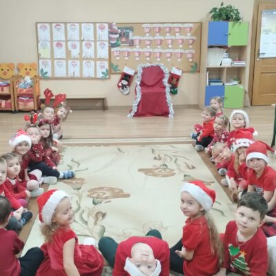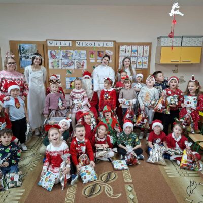 5 grudnia w naszym przedszkolu wydarzyło się coś naprawdę magicznego —tego dnia odwiedził nas wyjątkowy gość — sam Święty Mikołaj! Dzieci od rana z niecierpliwością wypatrywały jego przybycia, a kiedy pojawił się w sali, radości i uśmiechów nie było końca. Każde dziecko otrzymało od Mikołaja piękny prezent, a w zamian przedszkolaki przygotowały dla niego krótkie niespodzianki. Każda z grup zaśpiewała piosenkę lub wyrecytowała wierszyk, chcąc w ten sposób podziękować mu za odwiedziny i okazać świąteczną radość. Spotkanie pełne było ciepła, śmiechu i świątecznej atmosfery. Dzieci obiecały Mikołajowi, że będą grzeczne przez cały rok, a on zapewnił, że odwiedzi je ponownie w przyszłym roku. To był niezapomniany, pełen magii dzień! 🎄✨