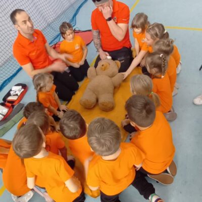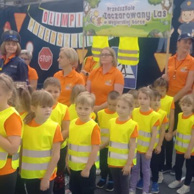 Dnia 8 listopada nasze przedszkolaki z Przedszkola „Zaczarowany Las” wzięły udział w kolejnej edycji Olimpiady Przedszkolaka. Tegoroczna olimpiada miała niezwykły, drogowy charakter – wszystko kręciło się wokół bezpieczeństwa na drodze i zasad ruchu drogowego. Dzieci wcieliły się w rolę małych uczestników ruchu drogowego oraz w policjantów a nawet strażaków. W atmosferze świetnej zabawy sprawdzały też swoją sprawność, zwinność i refleks, pokonując tory przeszkód, biegając slalomem i wykonując zadania na czas. Nie zabrakło też niecodziennych atrakcji, które łączyły naukę z zabawą – dzieci mogły obserwować sprzęt używany przez policjantów, strażaków oraz ratowników GOPR, a także porozmawiać o tym, jak ważne są elementy odblaskowe i odpowiedzialne zachowanie na drodze. Wszyscy uczestnicy otrzymali medale i pamiątkowe dyplomy, a na ich twarzach gościł uśmiech od ucha do ucha – bo jak wiadomo, w Olimpiadzie Przedszkolaka wszyscy są zwycięzcami! Serdecznie dziękujemy pracownikom Ośrodek Promocji Gminy Węgierska Górka za wspaniałą organizację tego wydarzenia, zaangażowanie i stworzenie atmosfery pełnej radości, sportowego ducha oraz edukacyjnej zabawy. Dzięki Wam dzieci mogły przeżyć niezapomniany dzień, łączący ruch, emocje i naukę o bezpieczeństwie!