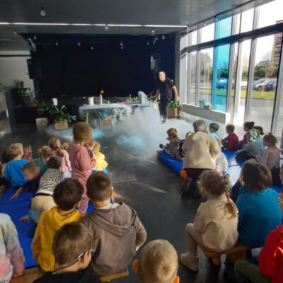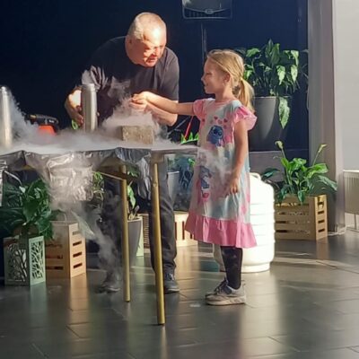 Dziś w naszym przedszkolu działo się naprawdę dużo! Wszystkie dzieci uczestniczyły w uroczystym otwarciu nowego placu zabaw. To jednak nie koniec atrakcji! Po wspólnej zabawie dzieci obejrzały fascynujący pokaz z ciekłym azotem. Na ich oczach działy się prawdziwe „cuda nauki” – dymiące naczynia, mroźne bańki i wybuchy śmiechu przy każdym doświadczeniu. To był dzień pełen emocji, zabawy i nauki, który na długo zostanie w naszej pamięci. Dziękujemy, że mogliśmy być częścią tego wyjątkowego dnia!