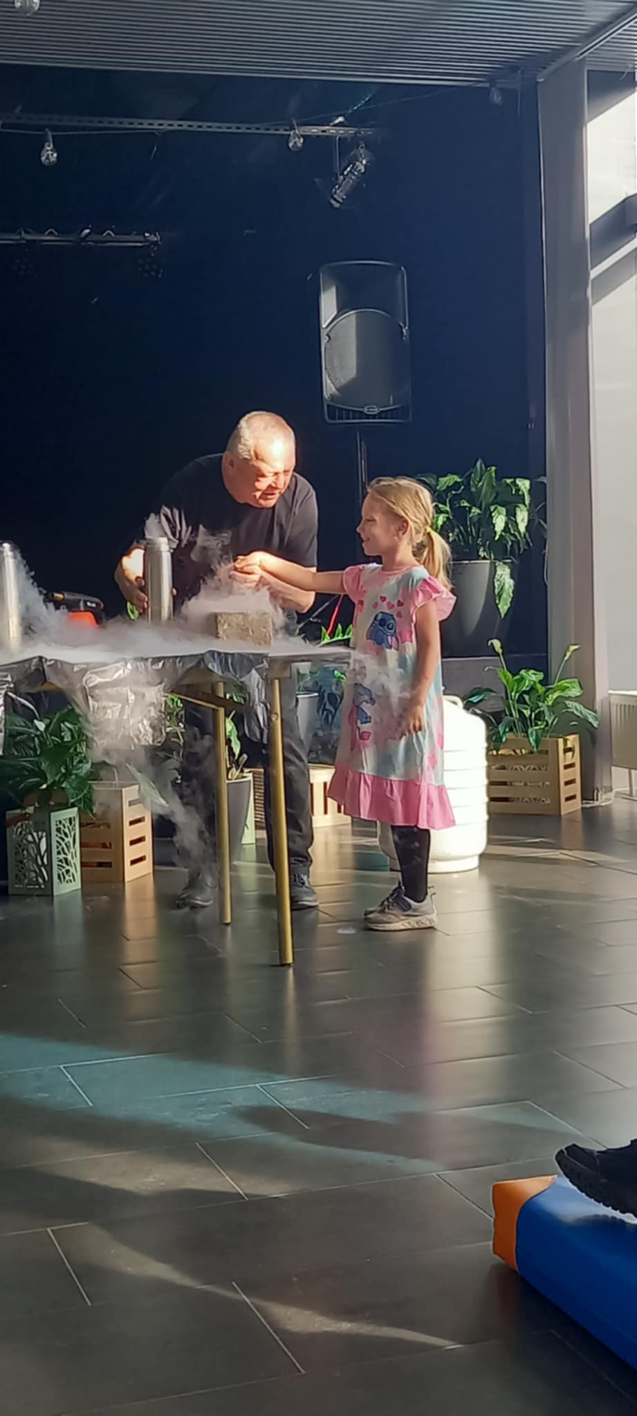 Dziś w naszym przedszkolu działo się naprawdę dużo! Wszystkie dzieci uczestniczyły w uroczystym otwarciu nowego placu zabaw. To jednak nie koniec atrakcji! Po wspólnej zabawie dzieci obejrzały fascynujący pokaz z ciekłym azotem. Na ich oczach działy się prawdziwe „cuda nauki” – dymiące naczynia, mroźne bańki i wybuchy śmiechu przy każdym doświadczeniu. To był dzień pełen emocji, zabawy i nauki, który na długo zostanie w naszej pamięci. Dziękujemy, że mogliśmy być częścią tego wyjątkowego dnia!