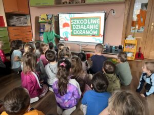 W ostatnich dniach zostały zorganizowane w naszym przedszkolu warsztaty we współpracy z wolontariatem pracowniczym HOPE firmy Żywiec Zdrój.Podczas warsztatów dzieci miały okazję dowiedzieć się, jakie mogą być skutki spędzania zbyt długiego czasu przed ekranem oraz dlaczego warto dbać o równowagę między światem online i offline.