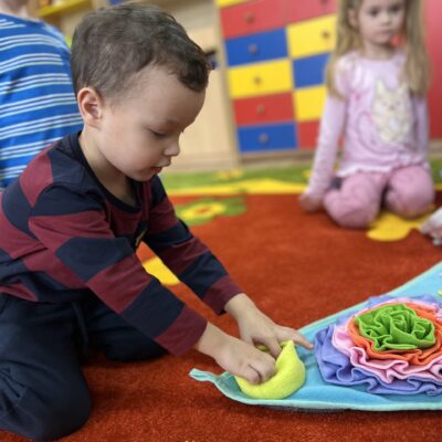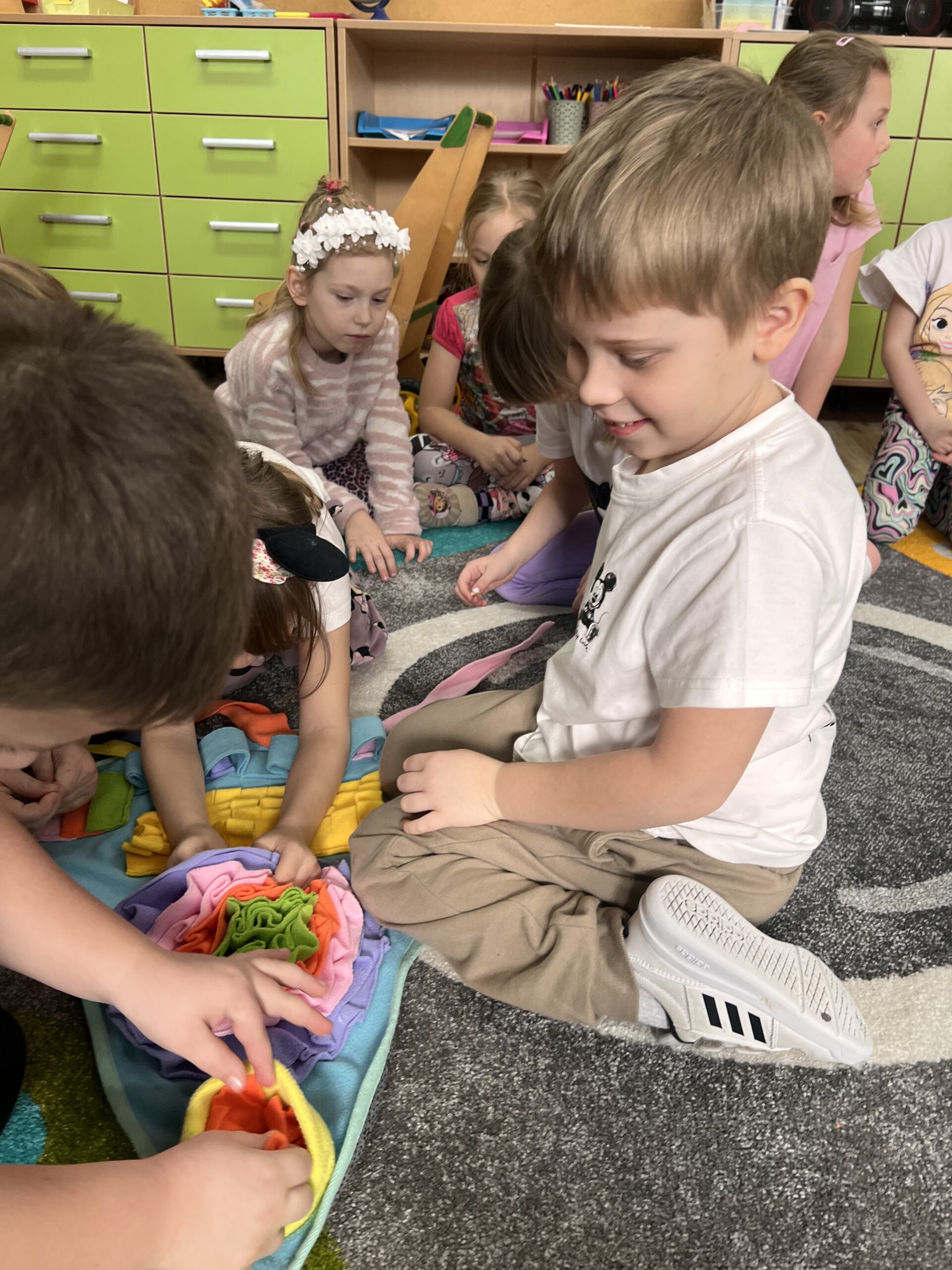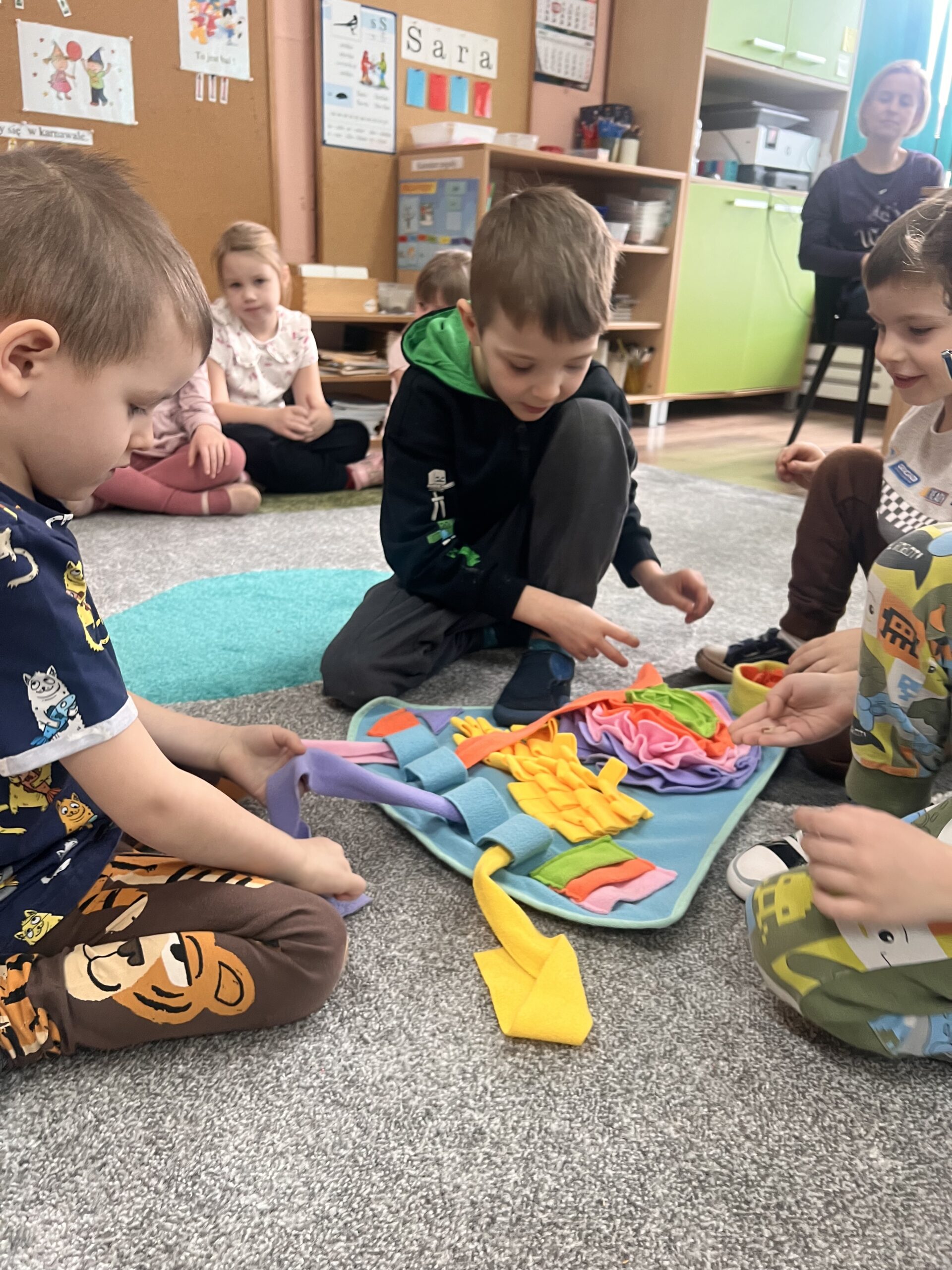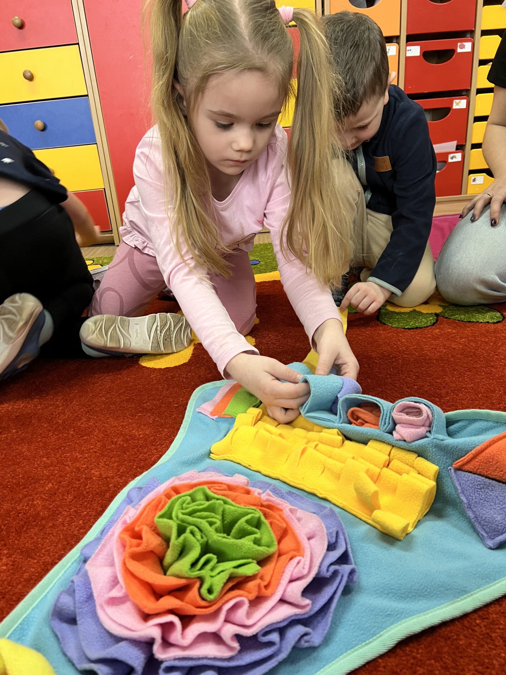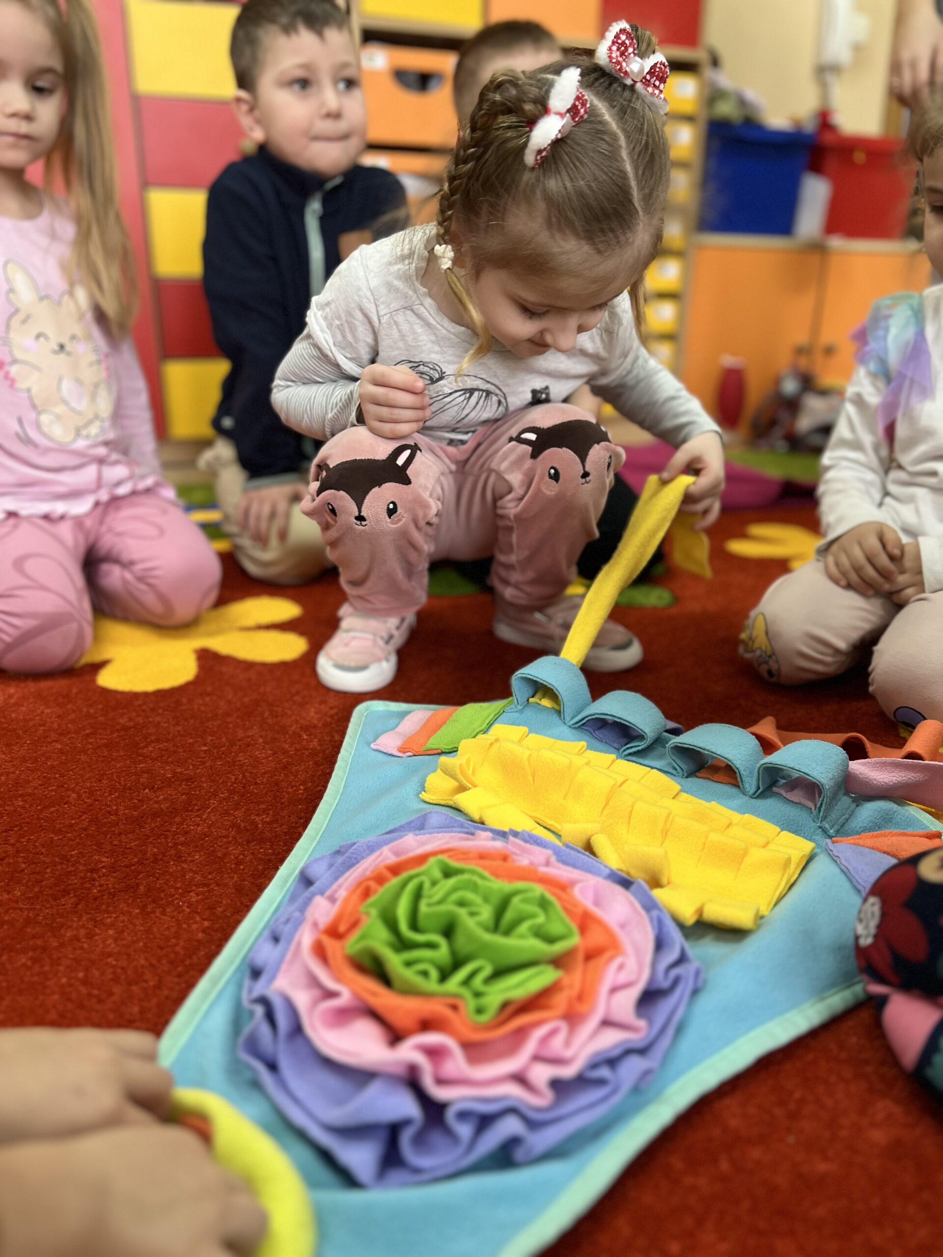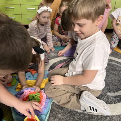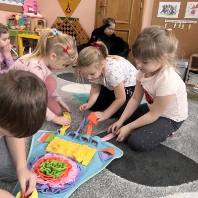 Dzieci miały okazję spotkać się z uroczą pieską Kirą, z którą nie tylko świetnie się bawiły, ale także zdobyły wiele cennych informacji. Tematem przewodnim było zdrowe odżywianie i witaminy – przedszkolaki dowiedziały się, czym możemy karmić pieska, a czego absolutnie nie wolno mu podawać. Teraz już wiedzą, że nie wszystkie smakołyki z naszego talerza są odpowiednie dla czworonogów!