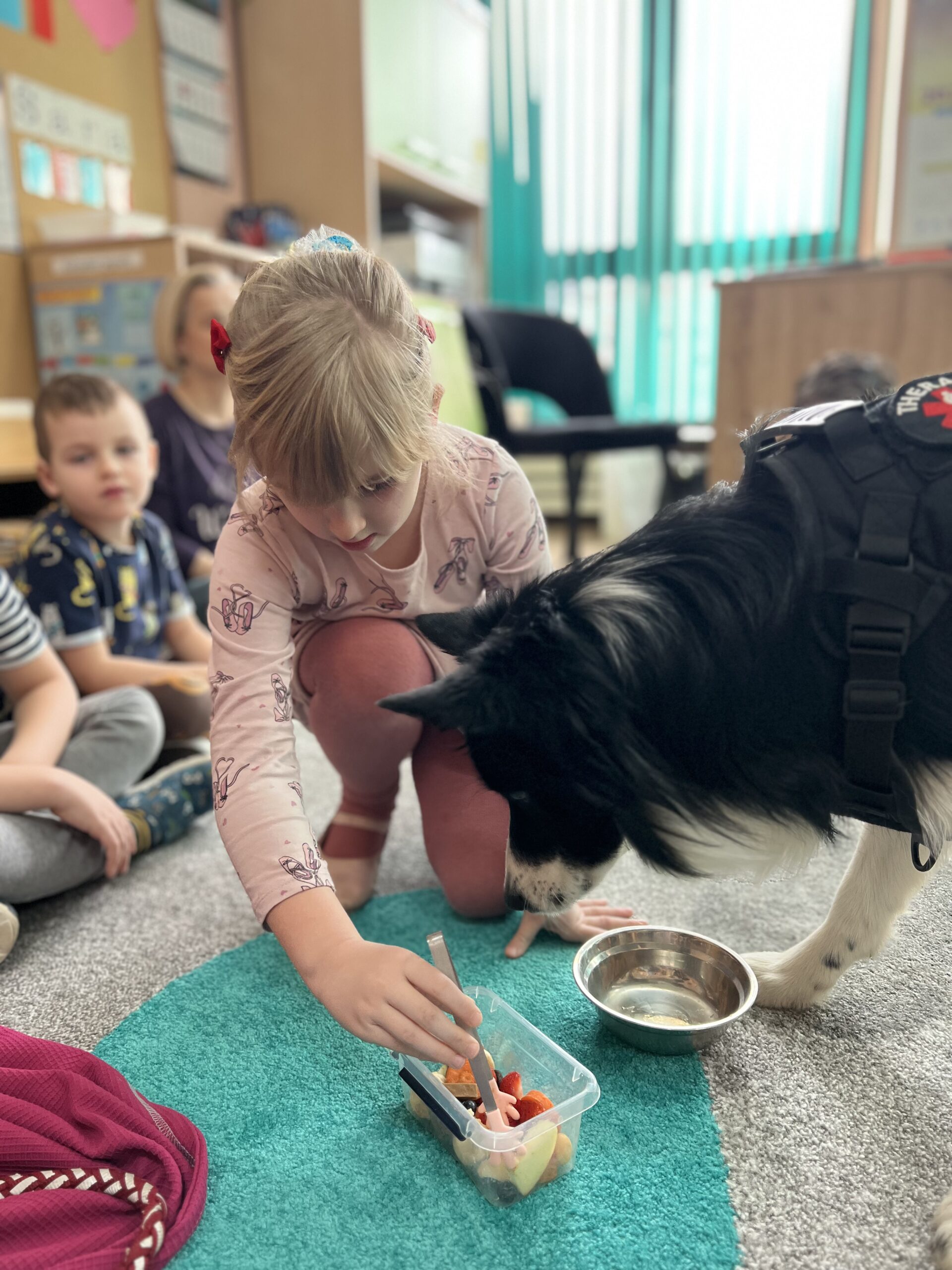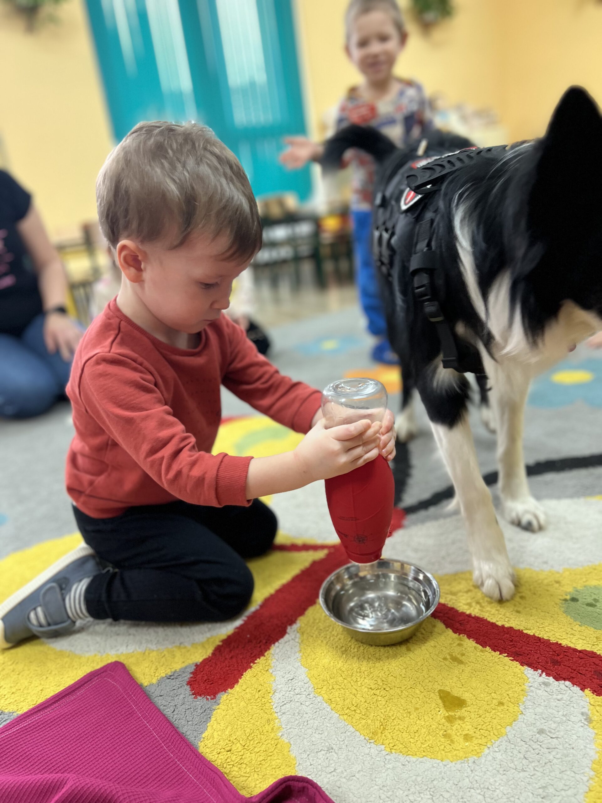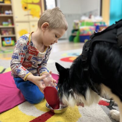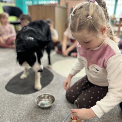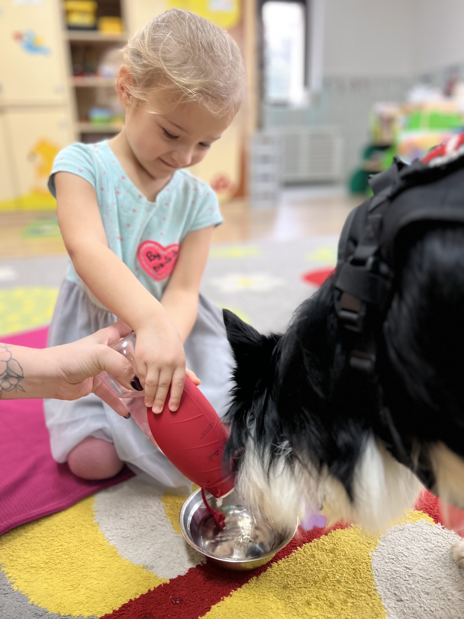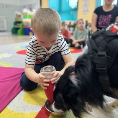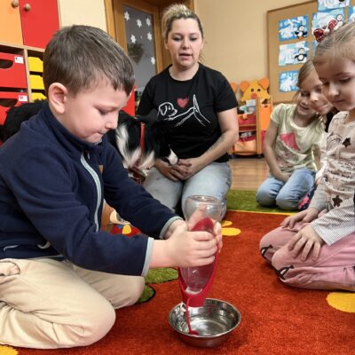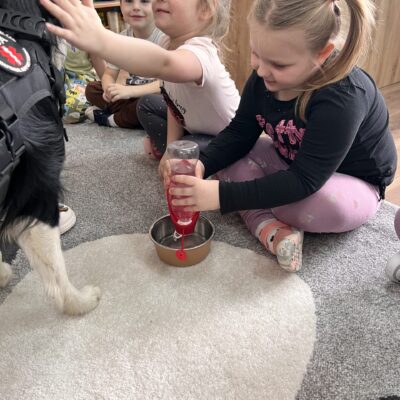 🐾 karmiły i poiły Kirę, ucząc się prawidłowej opieki nad psem,
