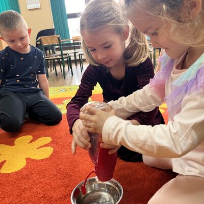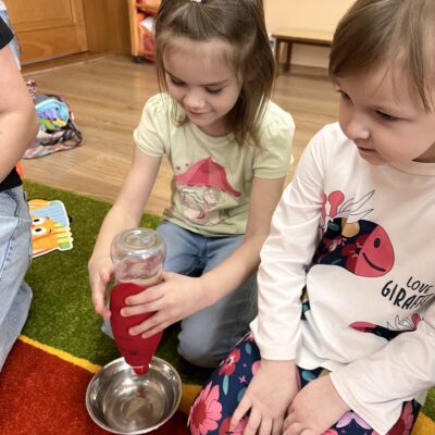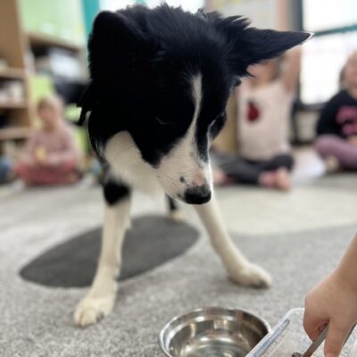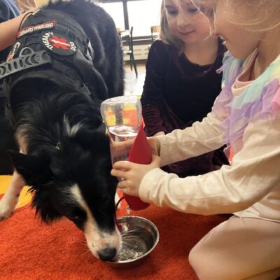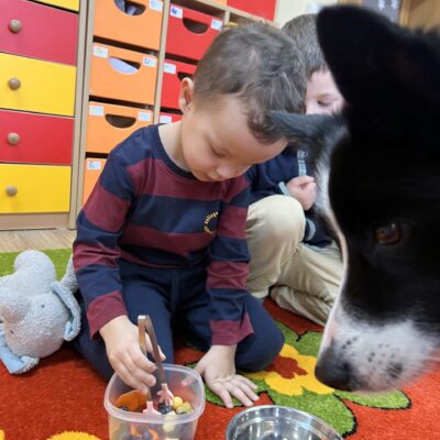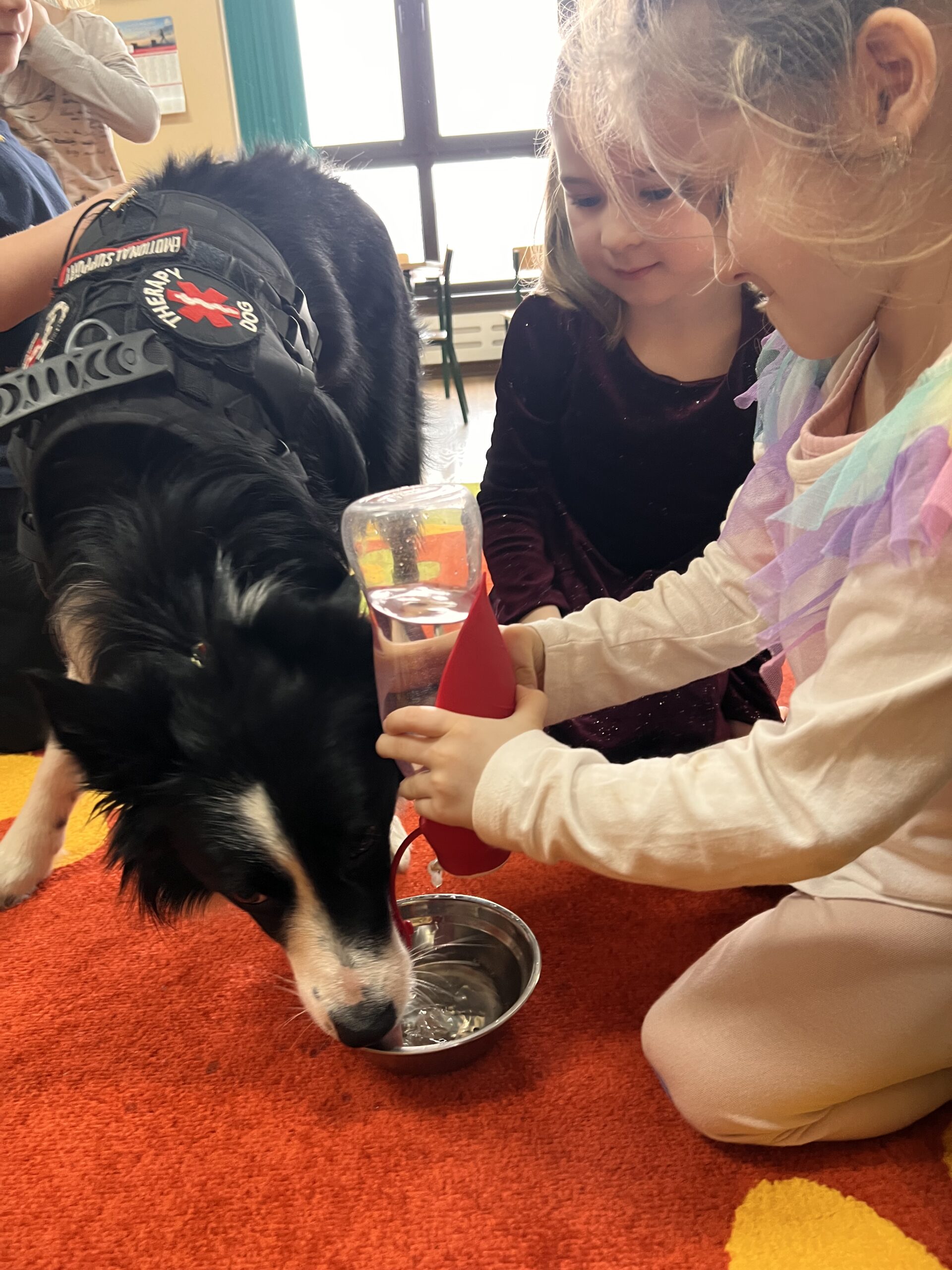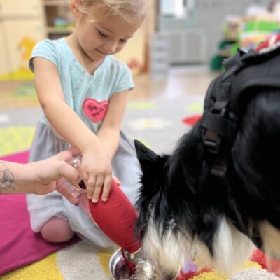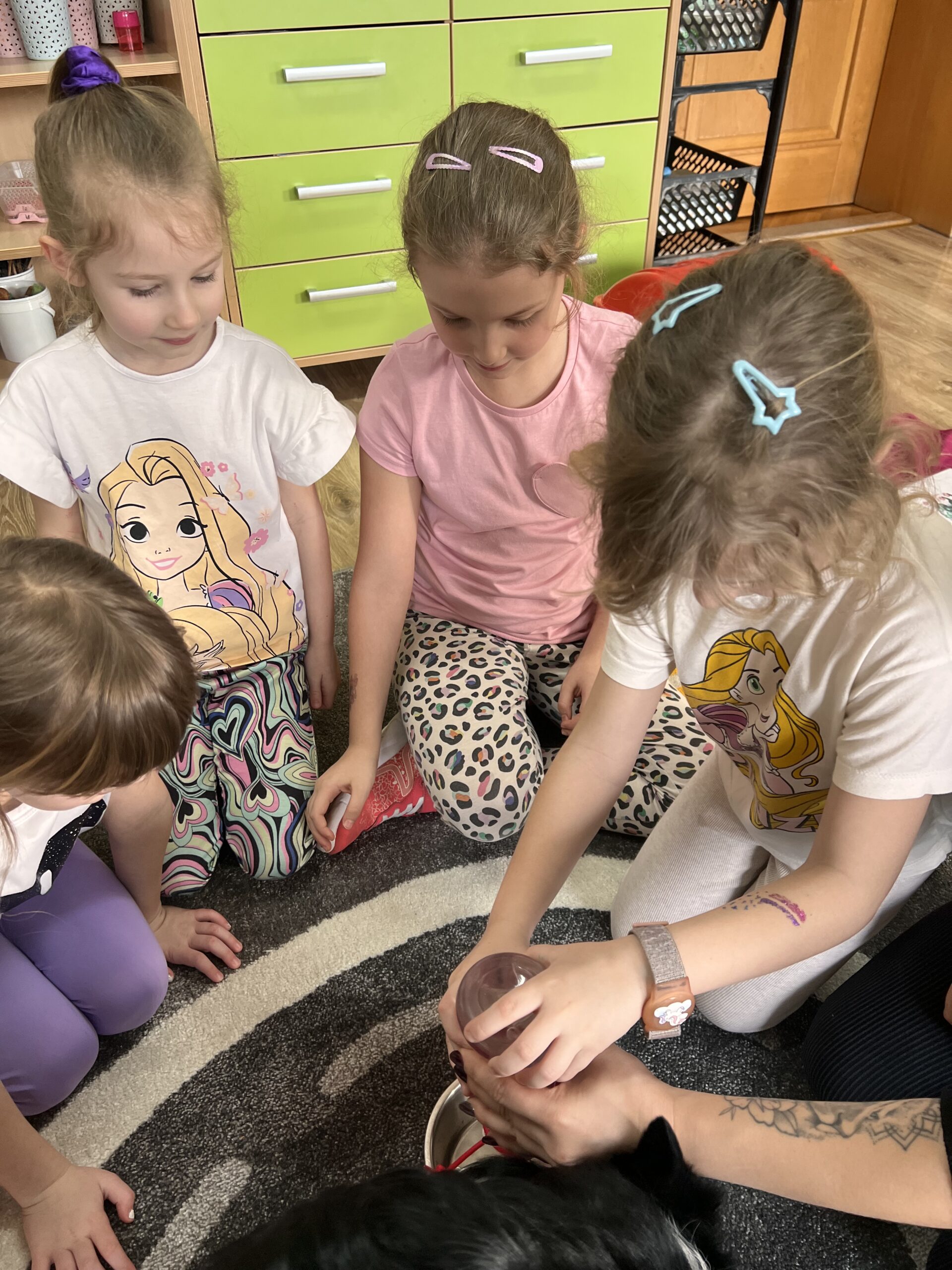 🐾 karmiły i poiły Kirę, ucząc się prawidłowej opieki nad psem,