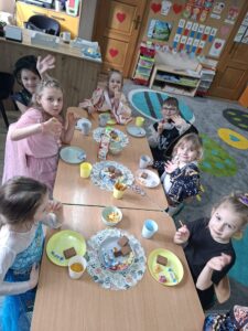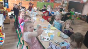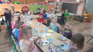 Po szalonej zabawie na wszystkich czekał słodki poczęstunek w salach, który był doskonałą okazją do chwili odpoczynku i wspólnych rozmów.