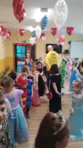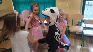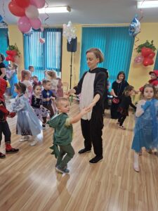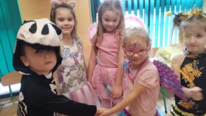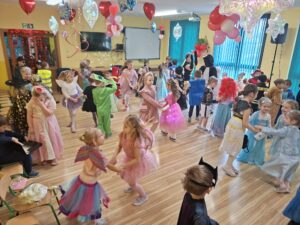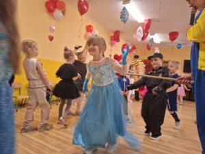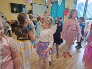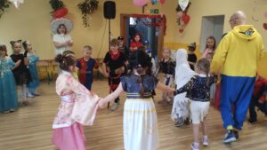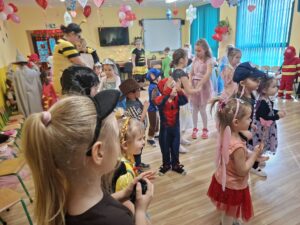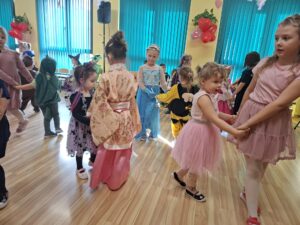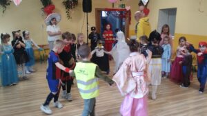 Dzieci przebrane w przepiękne, barwne stroje razem ze swoimi nauczycielkami wzięły udział w fantastycznej imprezie prowadzonej przez DJ-a, który przygotował mnóstwo ciekawych zabaw, konkursów i tanecznych atrakcji. Na parkiecie nie brakowało uśmiechów, energii i świetnej muzyki!